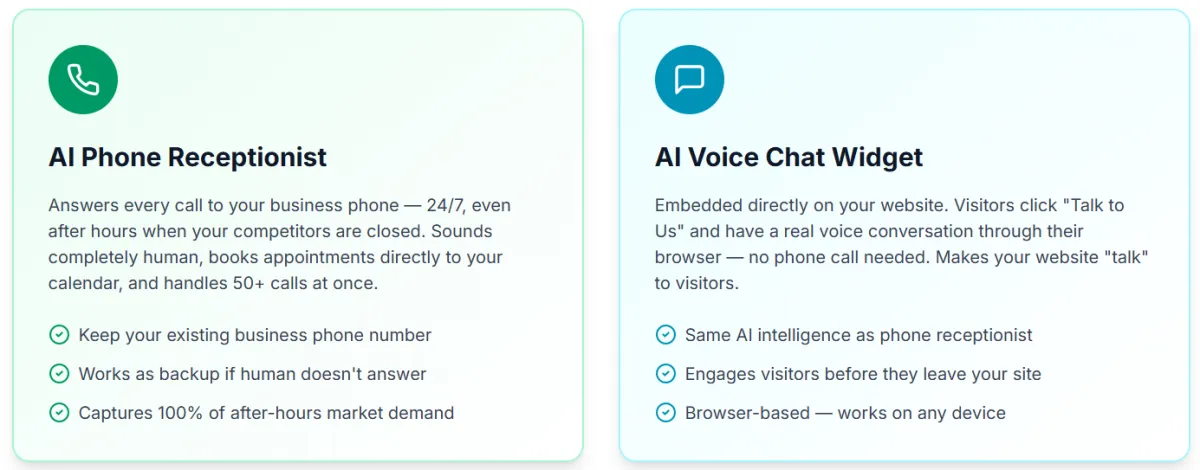 ✓ Good for: Any business with phone calls OR website traffic who wants to capture every lead through voice conversation